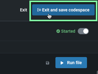 The snippet is now configured to run and return predictions. When you have finished working in the codespace, click Exit and save codespace.