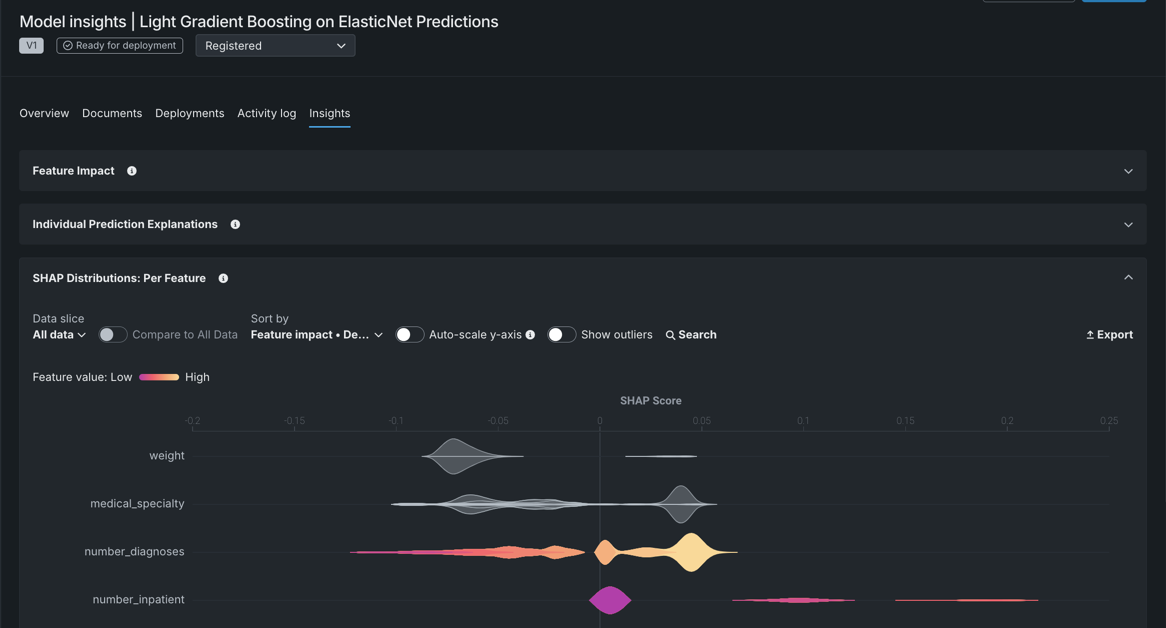 | Feature Impact | Shows which features are driving model decisions. | All | ✔ |