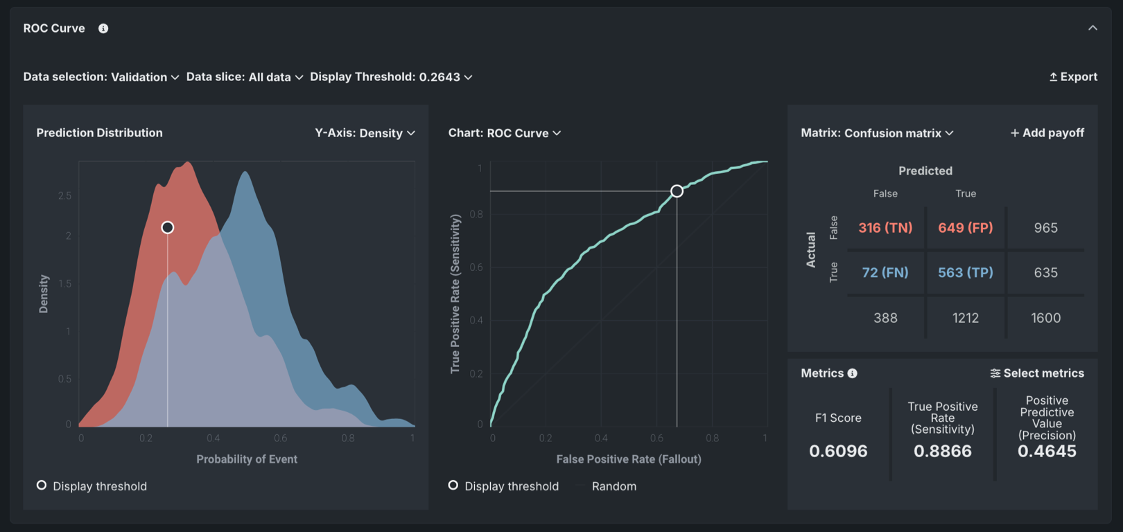 | ROC Curve | Provides tools for exploring classification, performance, and statistics related to a model. | Binary classification | ✔ |