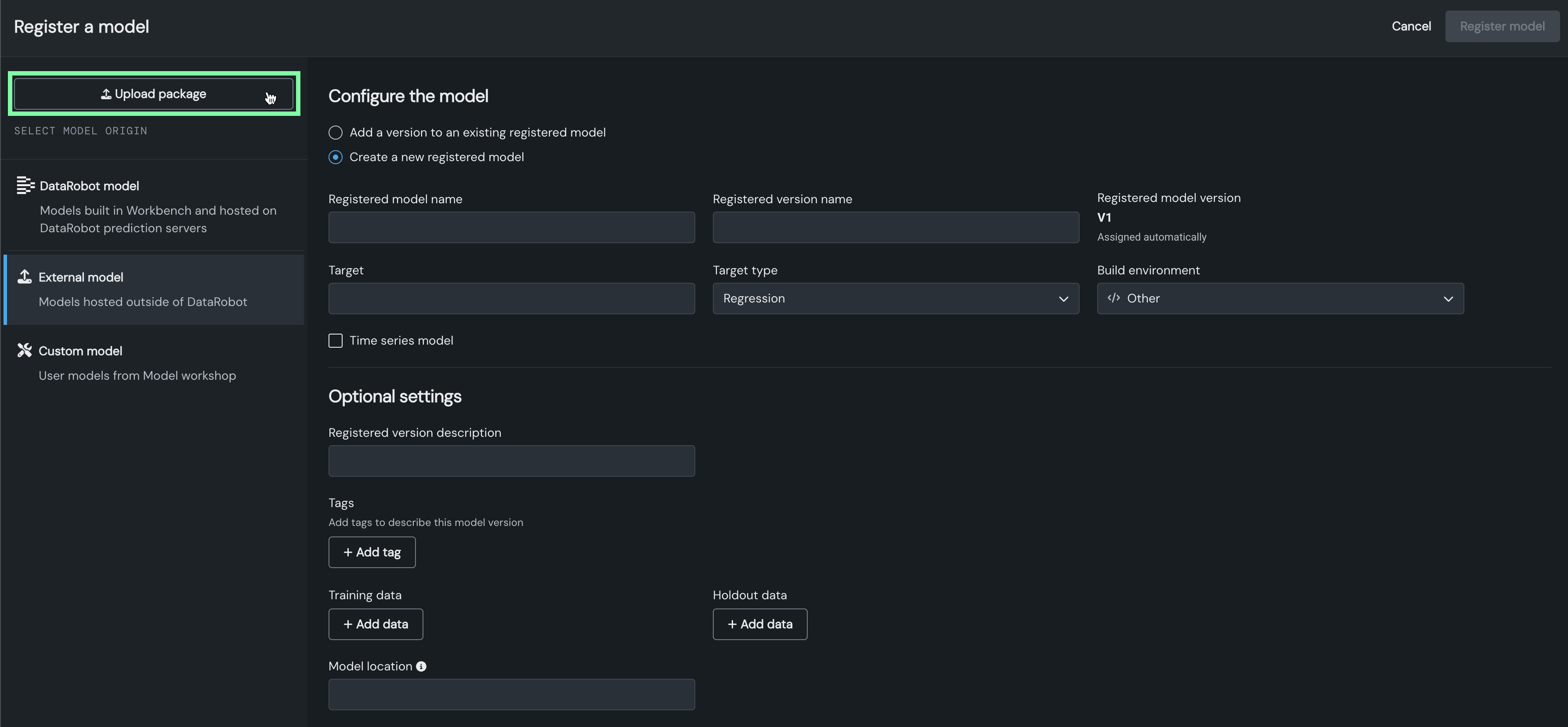 To import a .mlpkg file into DataRobot MLOps, add it as a new deployment.