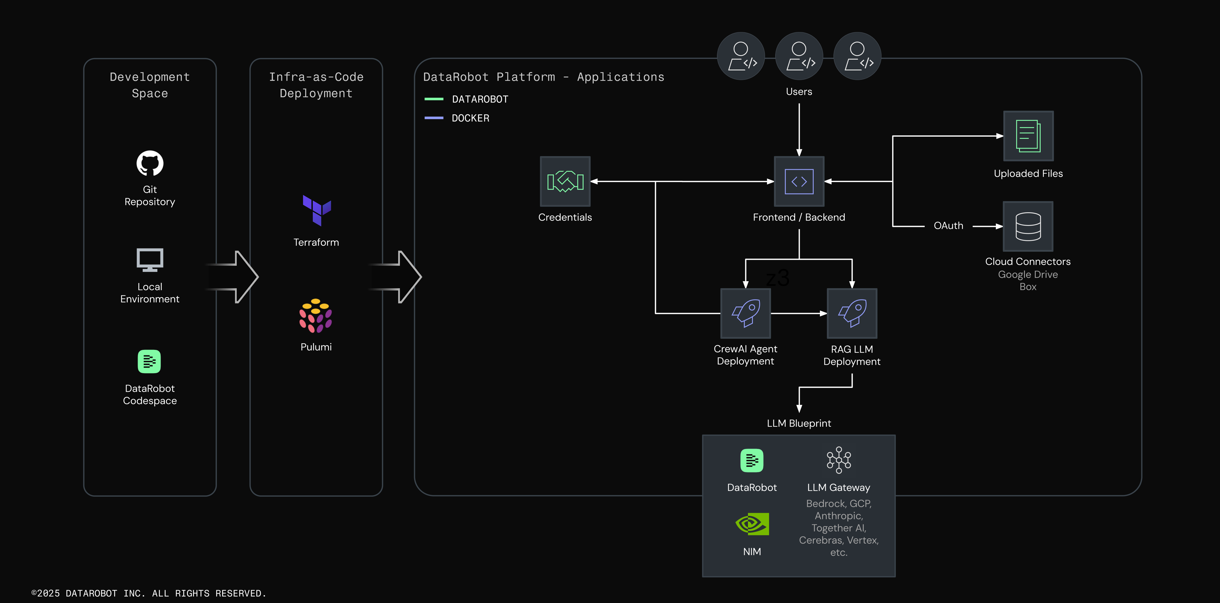 This template provides the below end-to-end AI architecture, from raw inputs to deployed application, while remaining highly customizable for specific business requirements.