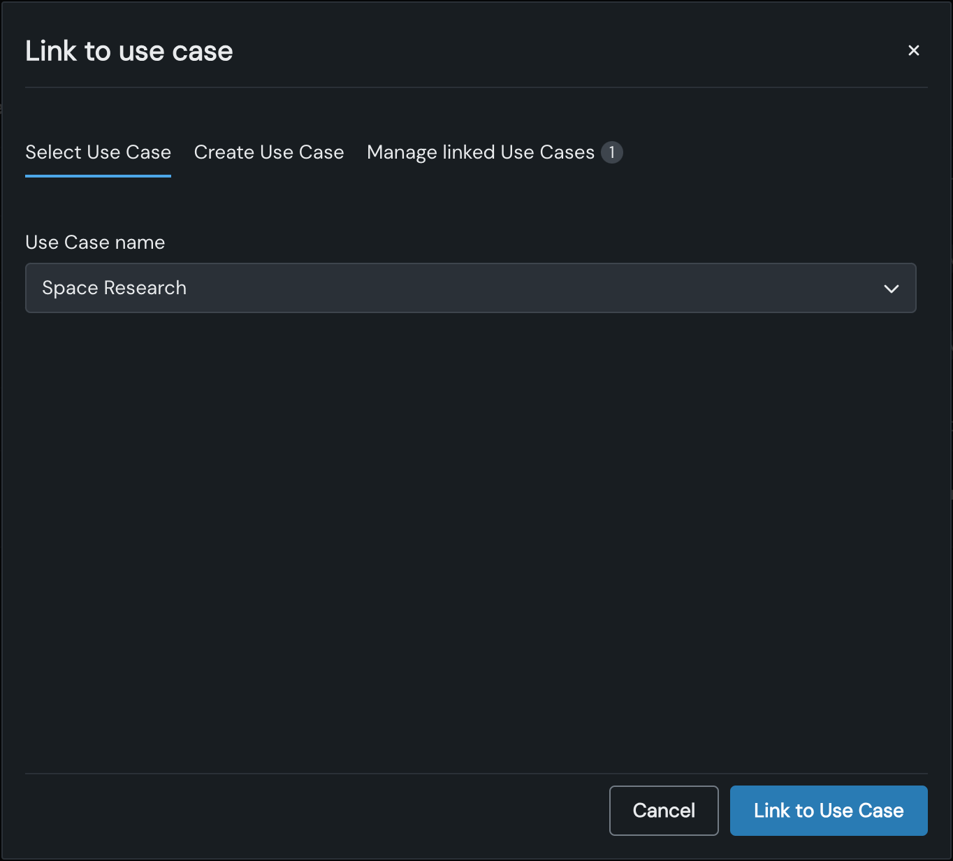 | Select Use Case | Click the Use Case name dropdown list to select an existing Use Case, then click Link to Use Case. |