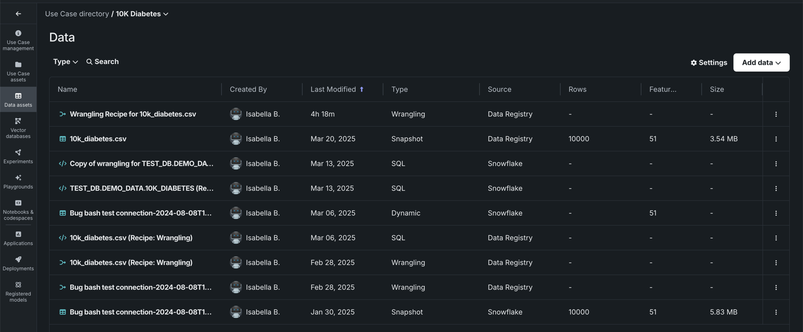 | Data Registry | Add any static or snapshot datasets you currently have access to in the AI Catalog. |