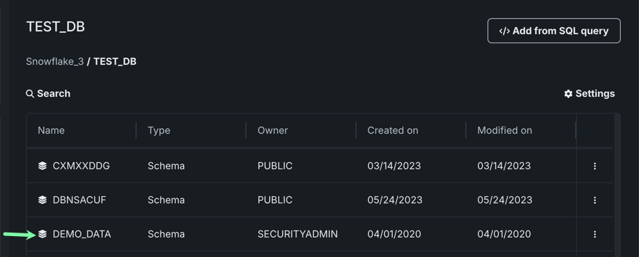 Once you've set up a data connection, you can add datasets by browsing the database schemas and tables you have access to.