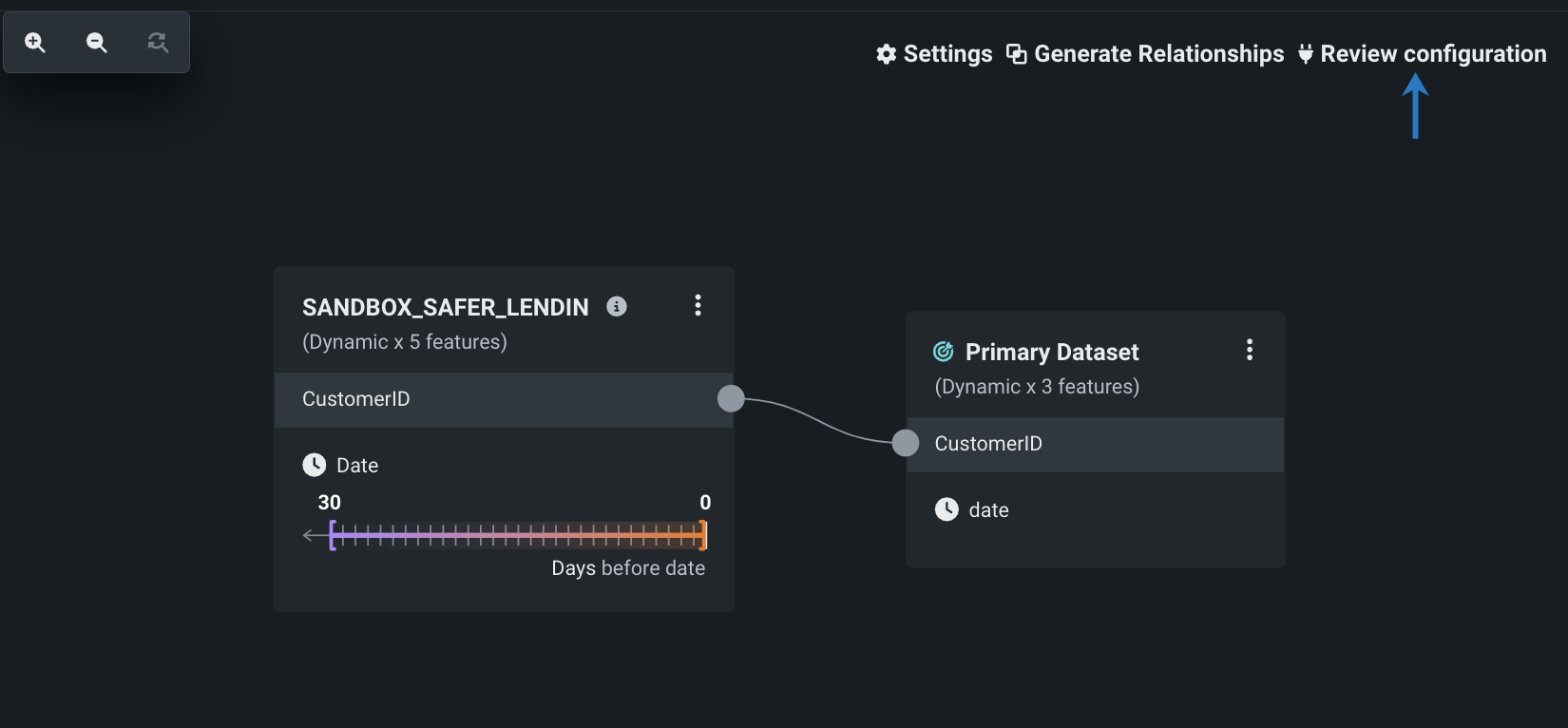 Click Review configuration to test the relationships on the Feature Discovery canvas.