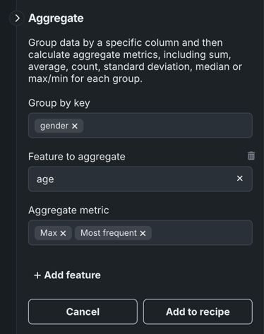 | Aggregate | Apply mathematical aggregations to features in your dataset. |