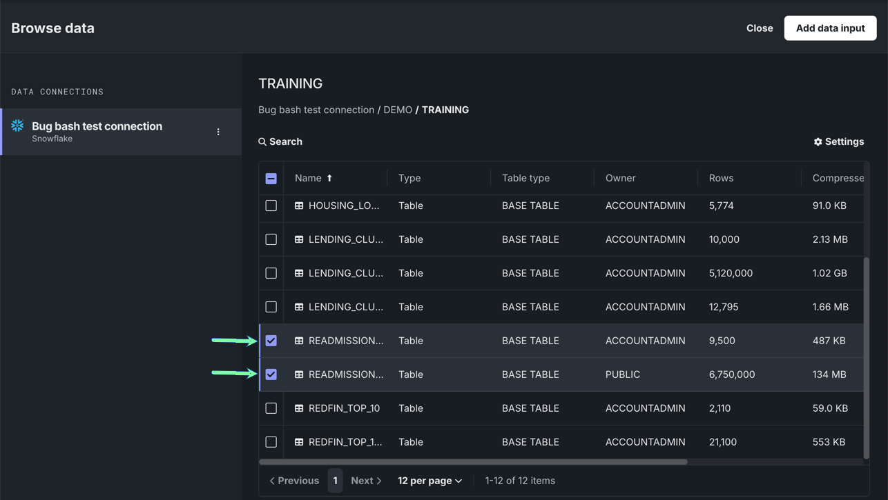 | 1 | Select another dataset | Select a different dataset (from the same data engine as the original dataset) to use as the data input. |