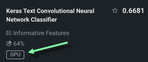 Models trained on GPUs are marked with a badge on the Leaderboard: