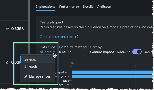 Sliced insights provide the option to view a subpopulation of a model's data based on feature values—either raw or derived.