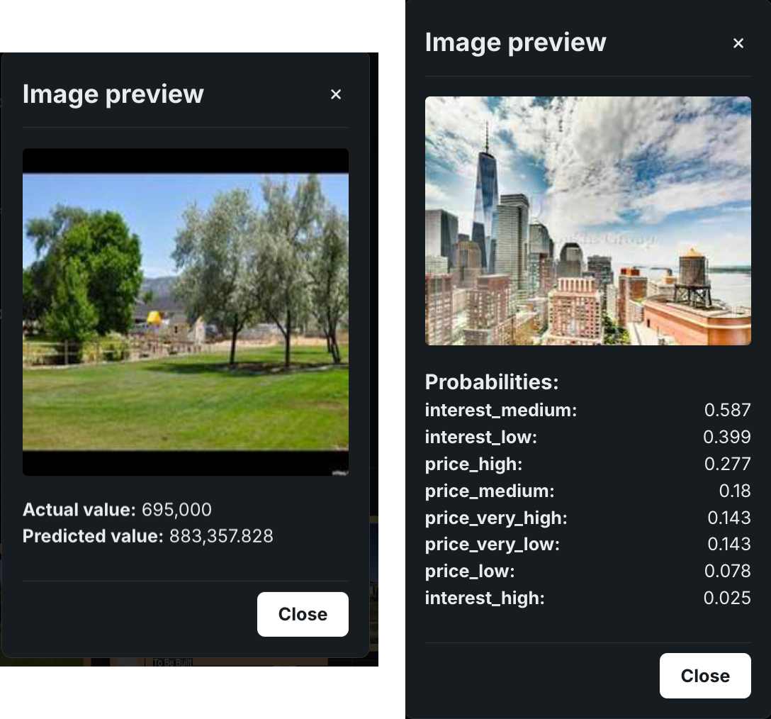 | Filter by actual (dropdown) | Displays images whose actual values belong to the selected class. All classes display by default. | Binary classification, multiclass, multilabel |