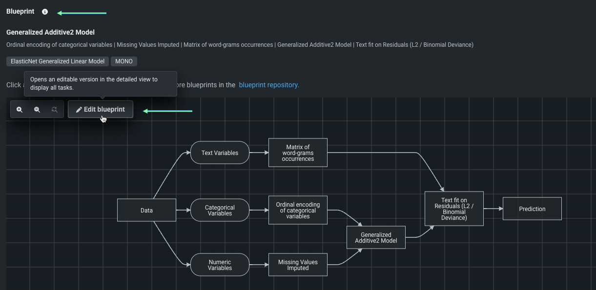 From the Leaderboard, select a model and then select the Blueprint tab. Click Edit blueprint: