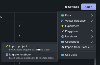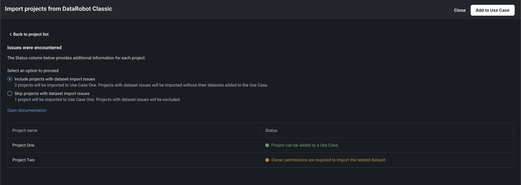If you have a Use Case and you wish to import DataRobot Classic projects to it, you can do so by following these instructions:
