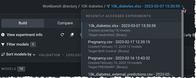 DataRobot provides breadcrumbs to help with navigation and asset selection.