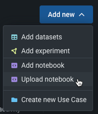 To import existing Jupyter notebooks (in .ipynb format) into DataRobot, click Add new > Upload notebook.
